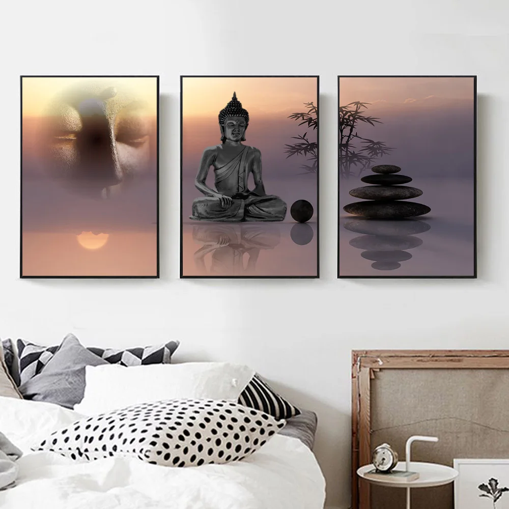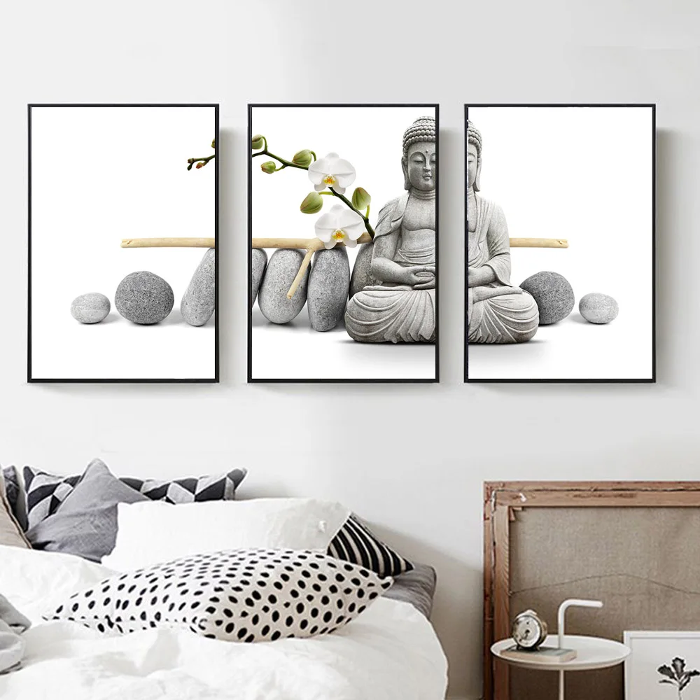 Абстрактная статуя Будды, черно-белая, Картина на холсте, скандинав...