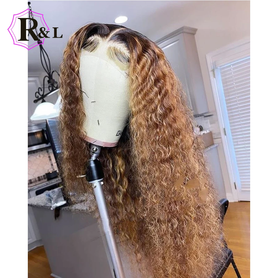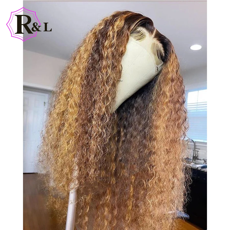 RULINDA Выделите 13X4 вьющиеся Синтетические волосы на кружеве человеческих волос парики с детскими волосами эффектом деграде (переход от темного к Цвет бразильский Реми человеческие волосы парики шнурка для Для женщин