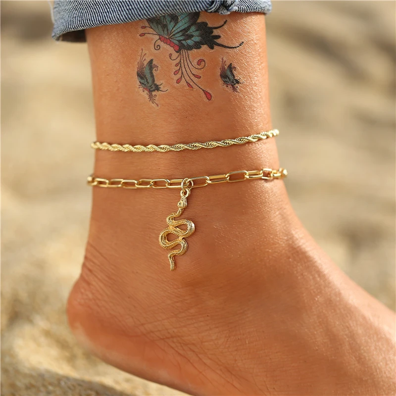 Браслеты для ног Многослойные женские, ножная цепочка под золото с бусинами, из змейки, Аксессуары для ног, пляжа, бижутерия