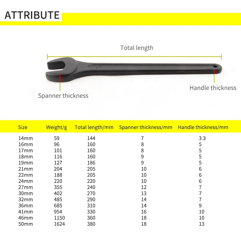 Сверхмощный Односторонний гаечный ключ, черный гаечный ключ 14 мм 16 мм 17 мм 18 мм 19 мм 21 мм 22 мм 24 мм 27 мм 30 мм 32 мм 36 мм 41 мм 46 мм 50 мм