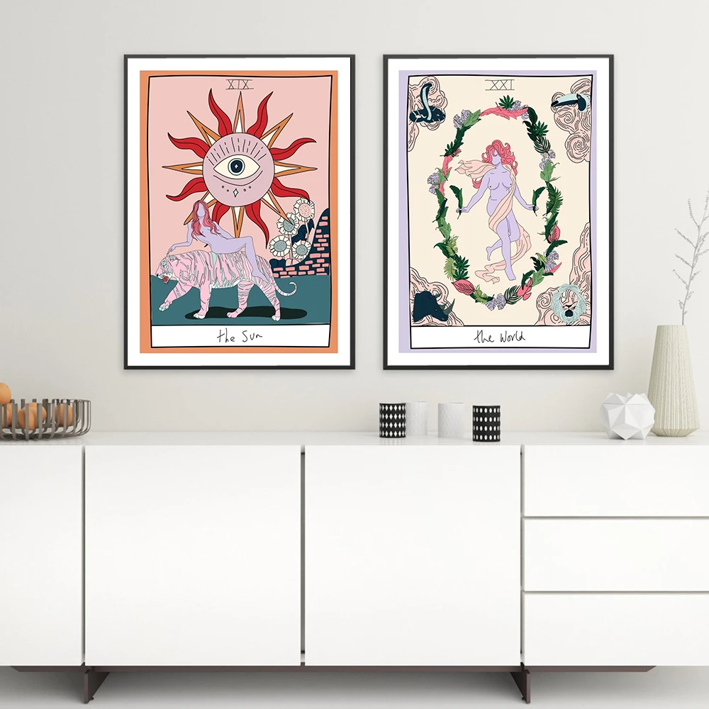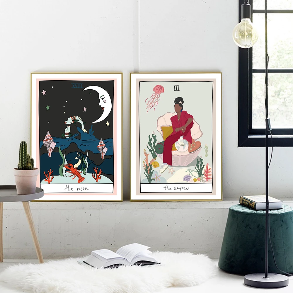 Настенные абстрактные картины в скандинавском стиле с изображением солнца, луны, звезд, таро, картины на холсте, постеры Empress World, принты для гостиной, домашний декор