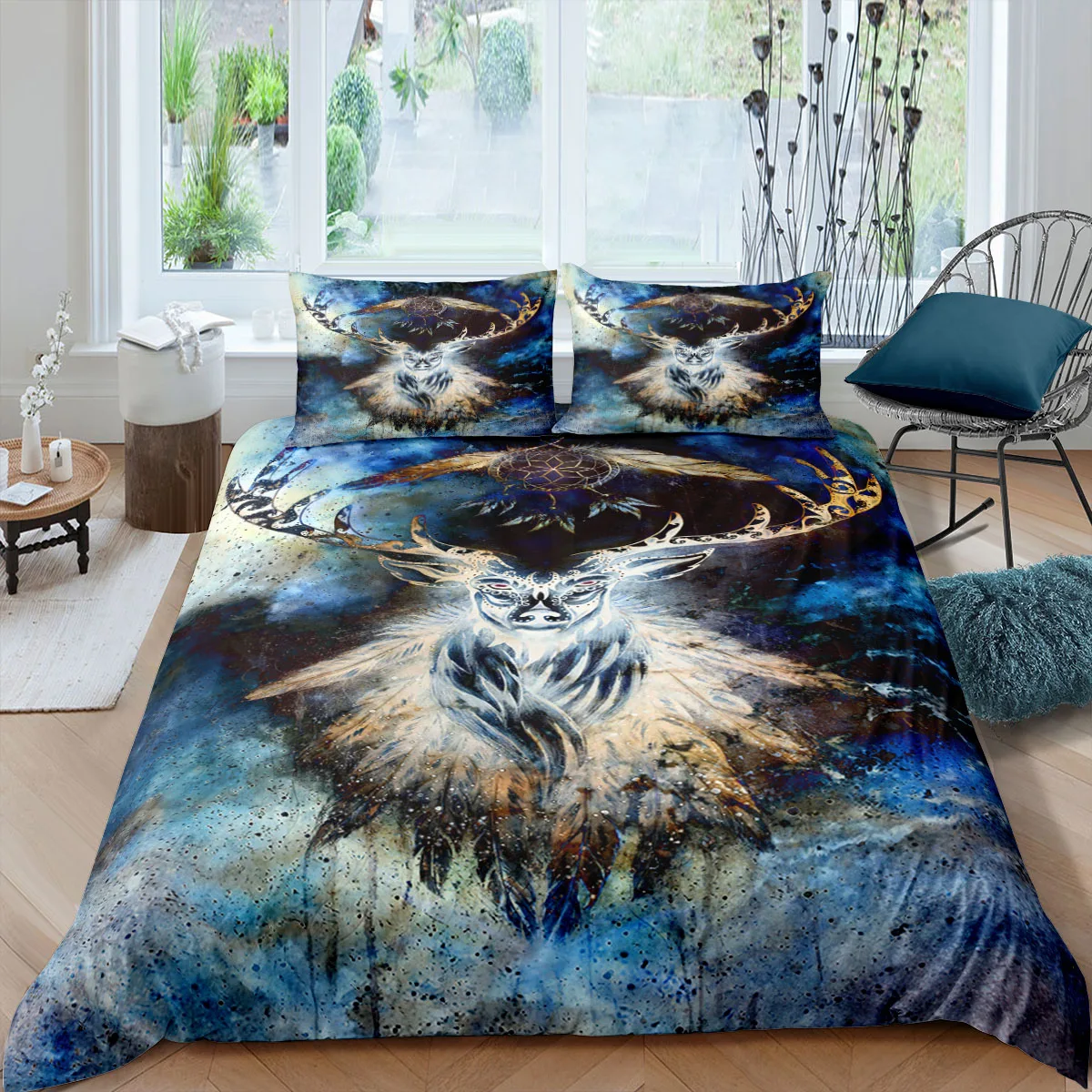 Комплект постельного белья с 3d-рисунком Ловца снов, пододеяльник с изображением волка и животных, пододеяльник для мальчиков с абстрактными перьями, пододеяльник, наволочка, двойной комплект кровати
