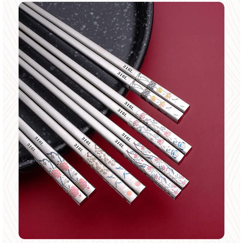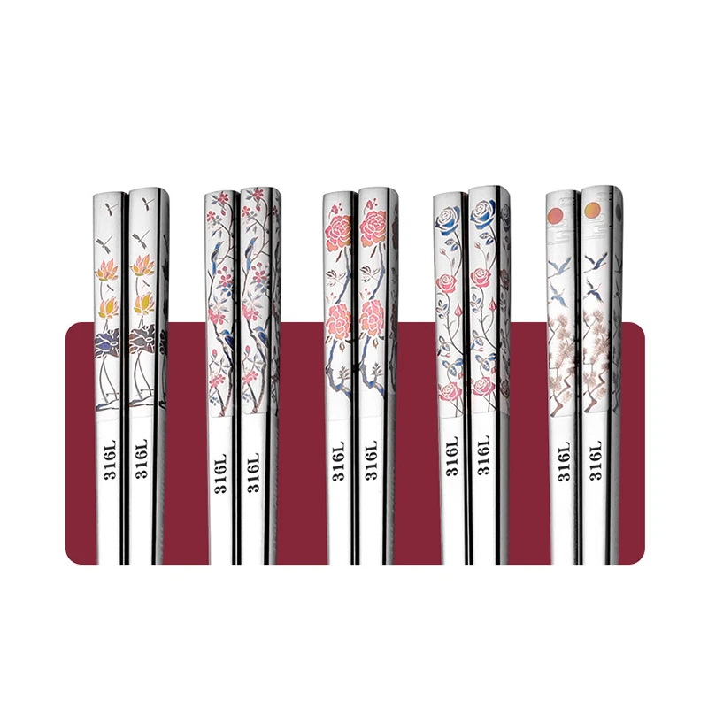 1 пара из нержавеющей стали 316L палочки для еды вишневый цвет посуда Кухня Столовая Бар домашний сад китайская палочка для еды держатель набор