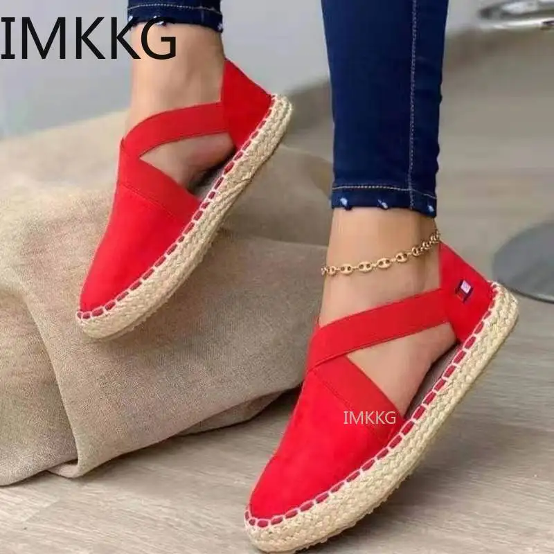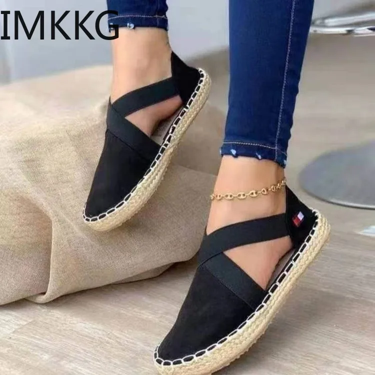 Сандалии женские в полоску, плоская подошва, эспадрильи, мягкая удобная обувь, эспадрильи, пеньковая веревка, без застежки, лето