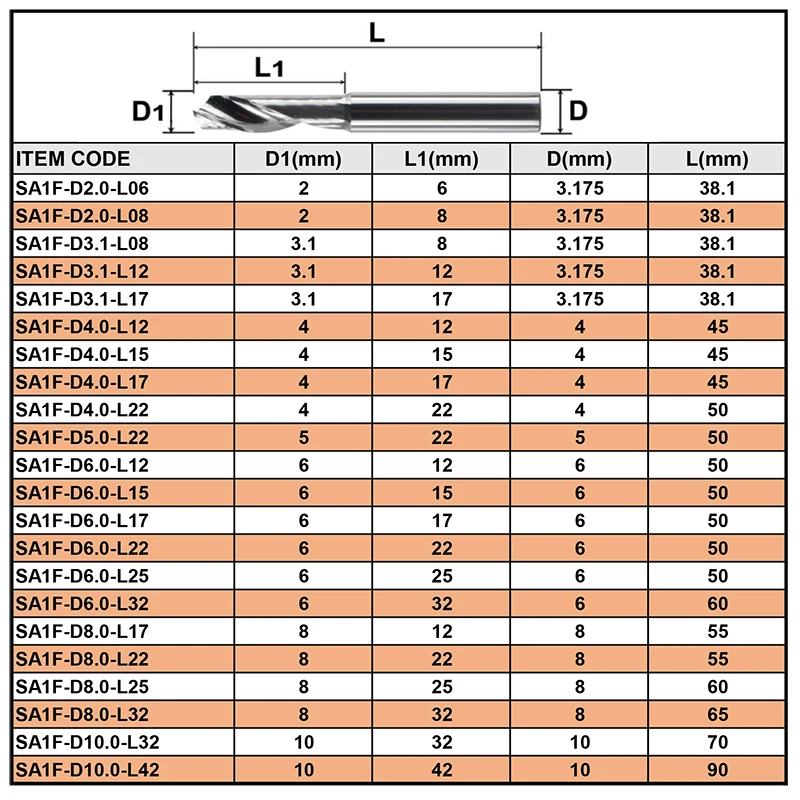 Dreanique 1 шт. 3,175 4 6 8 мм CNC Одиночная флейта твердосплавная Концевая фреза из карбида вольфрама, фреза для алюминия