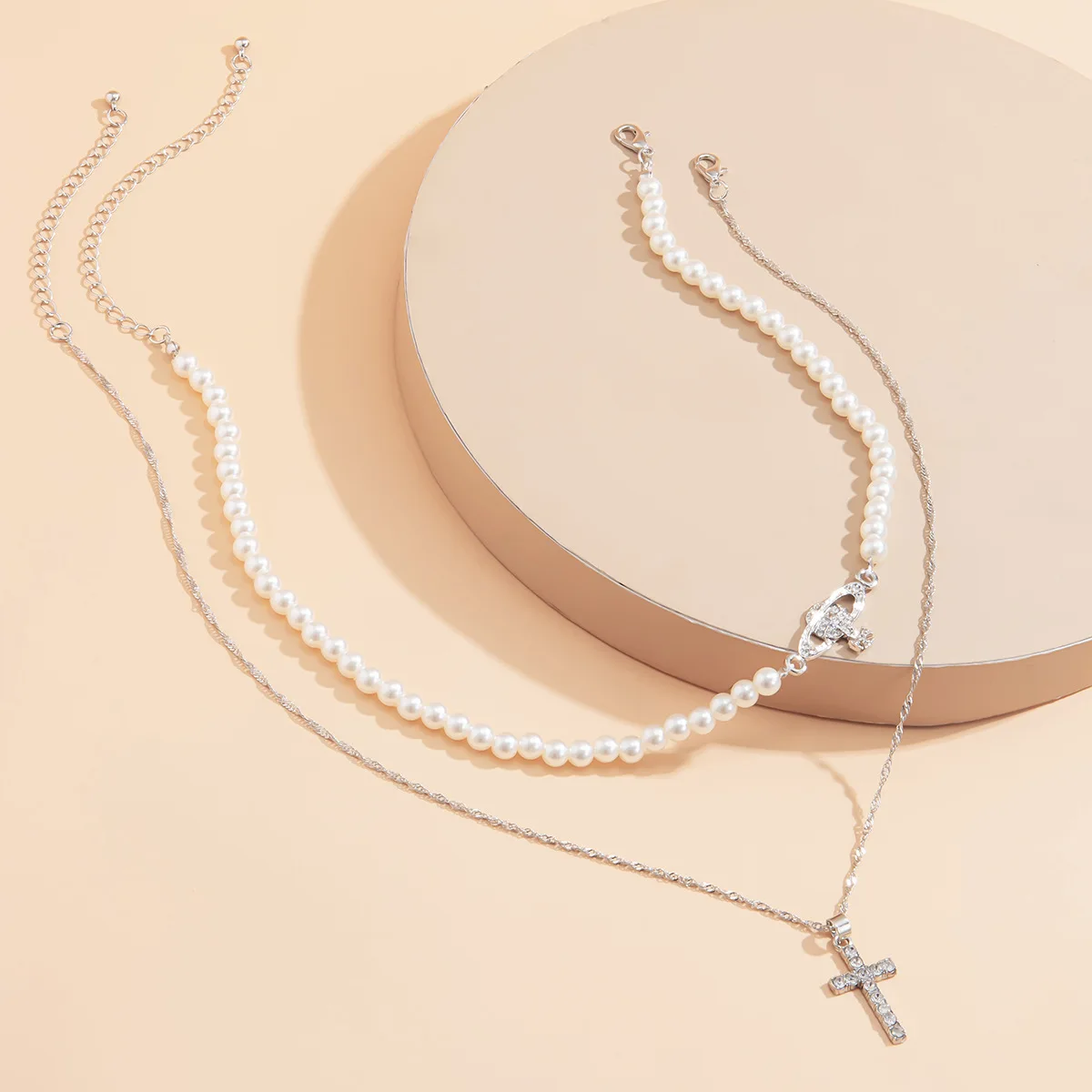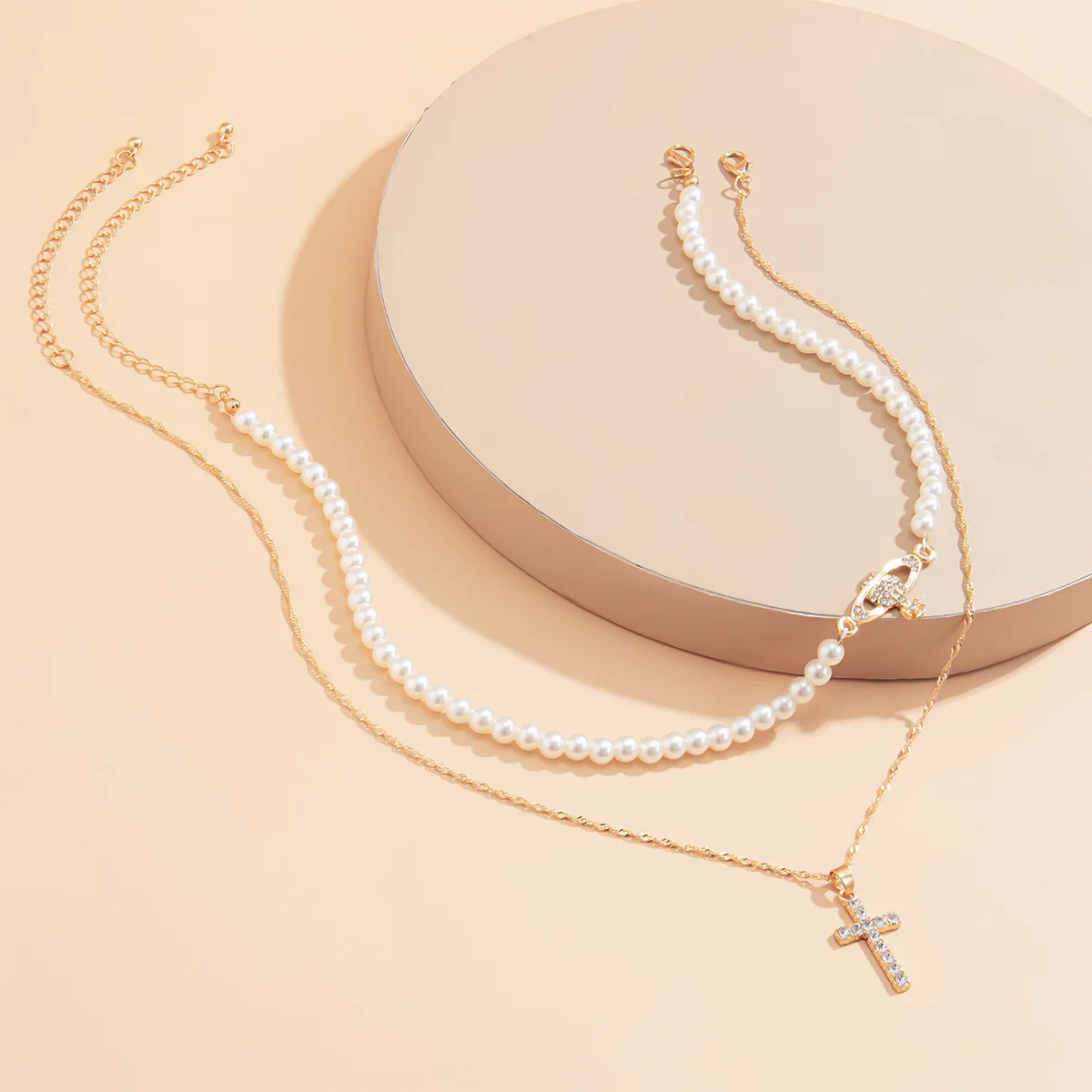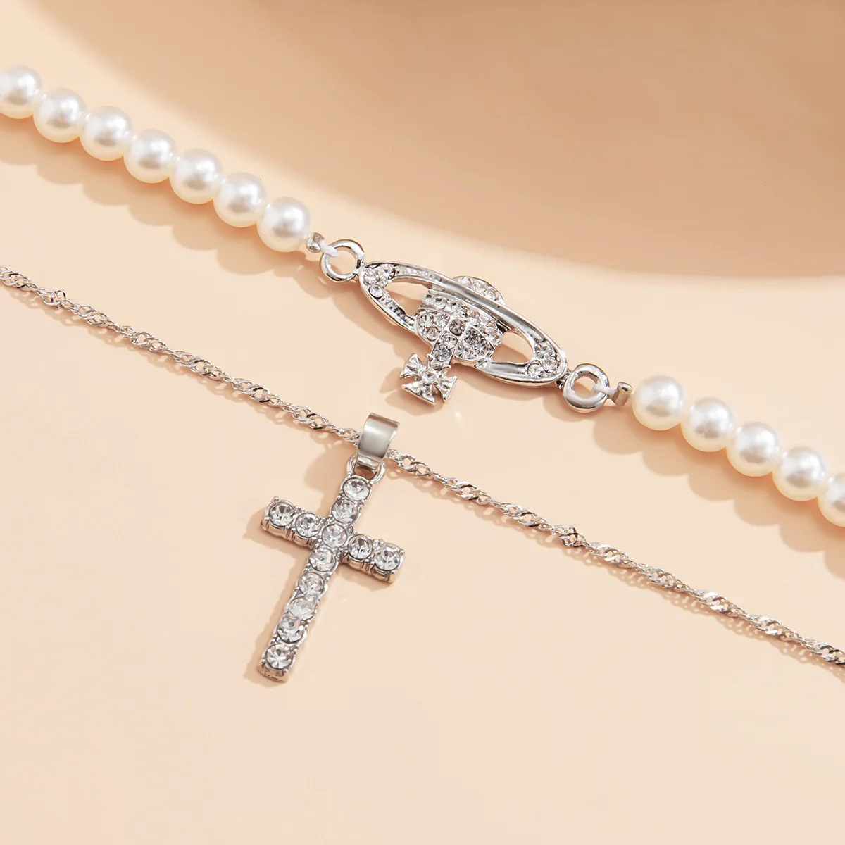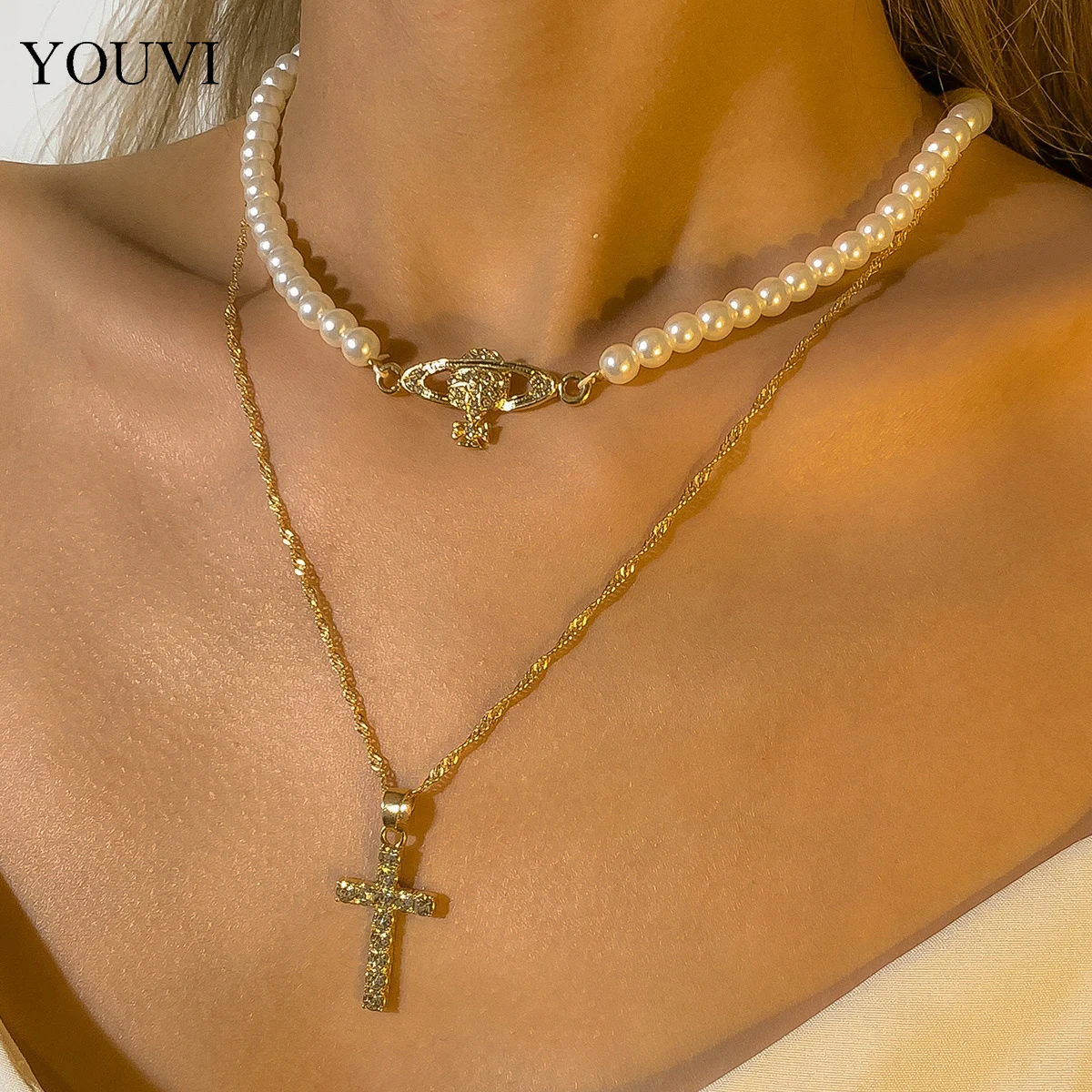 YOUVI Роскошная обувь с украшением в виде кристаллов и О-образным жемчужное ожерелье комплект ювелирных изделий для женщин Свадебная вечеринка гот Стразы крест кулон ожерелье подвески ювелирные изделия