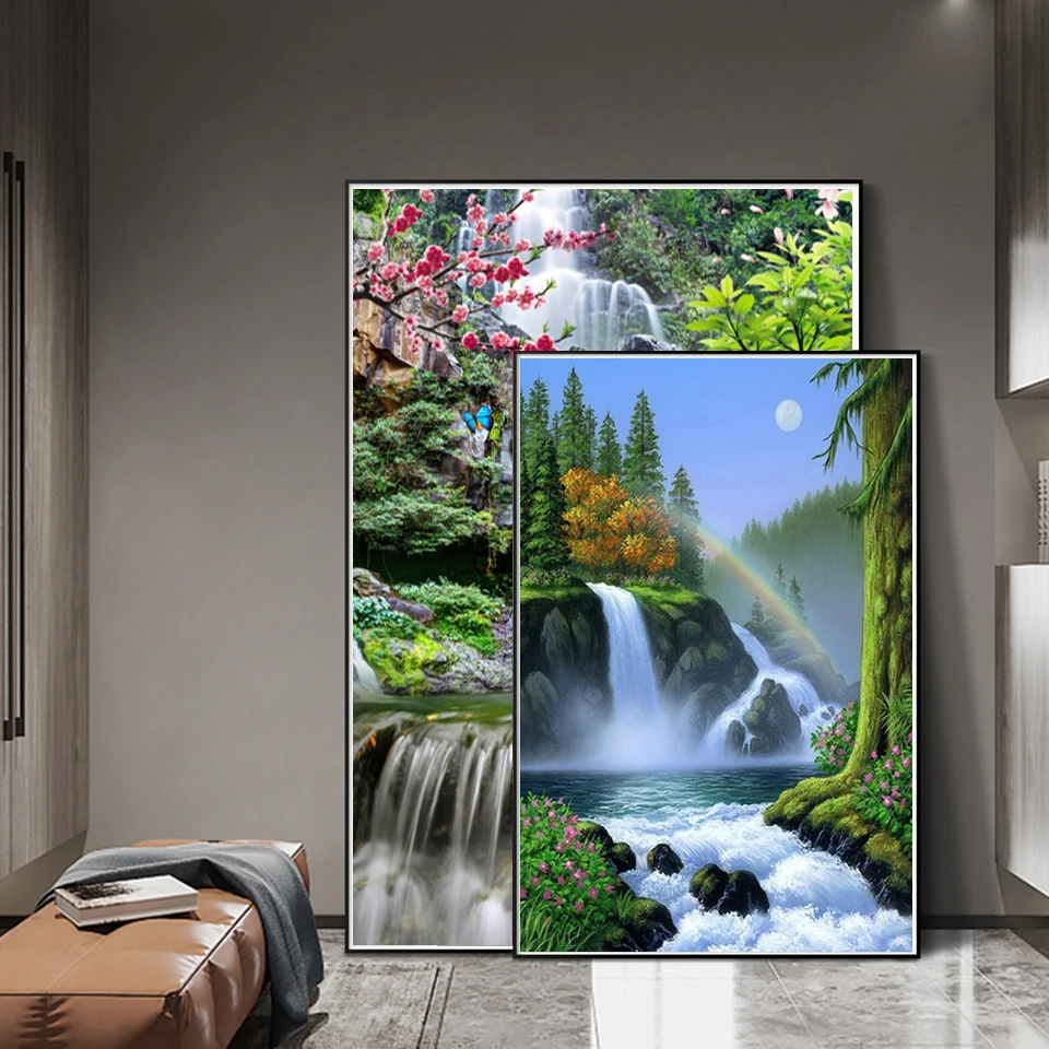 Алмазная живопись сделай сам, пейзаж водопада, 5d, ручная работа, полноразмерная Алмазная вышивка крестиком, гора, настенное искусство