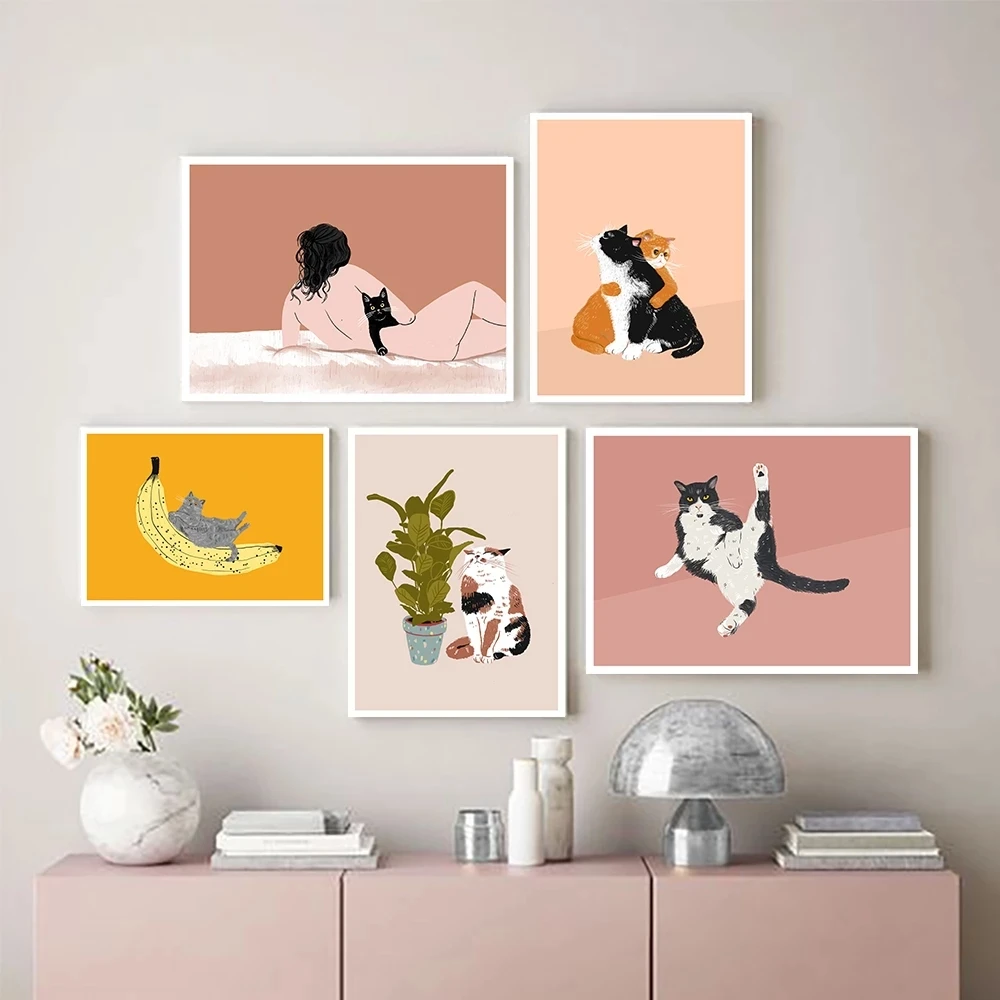 Подарки кошки, настенная живопись, забавные постеры и принты с кошк...