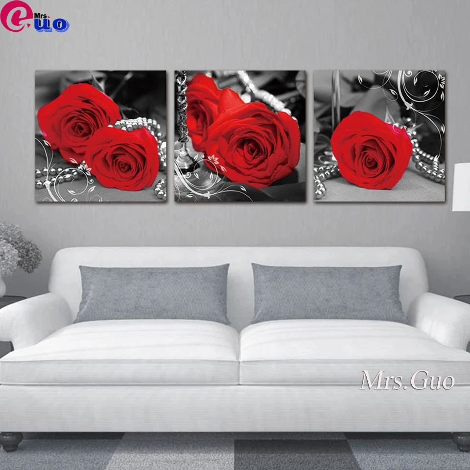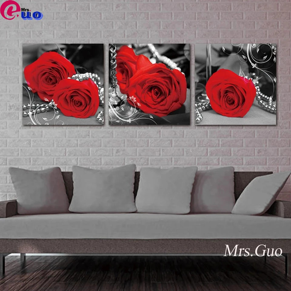 Триптих алмазная живопись романтические красные розы 3 шт./компл. Алмазная вышивка стены искусства Алмазная мозаика для гостиной домашний декор