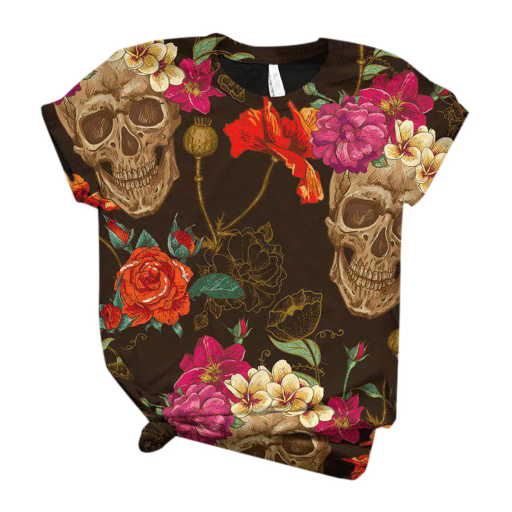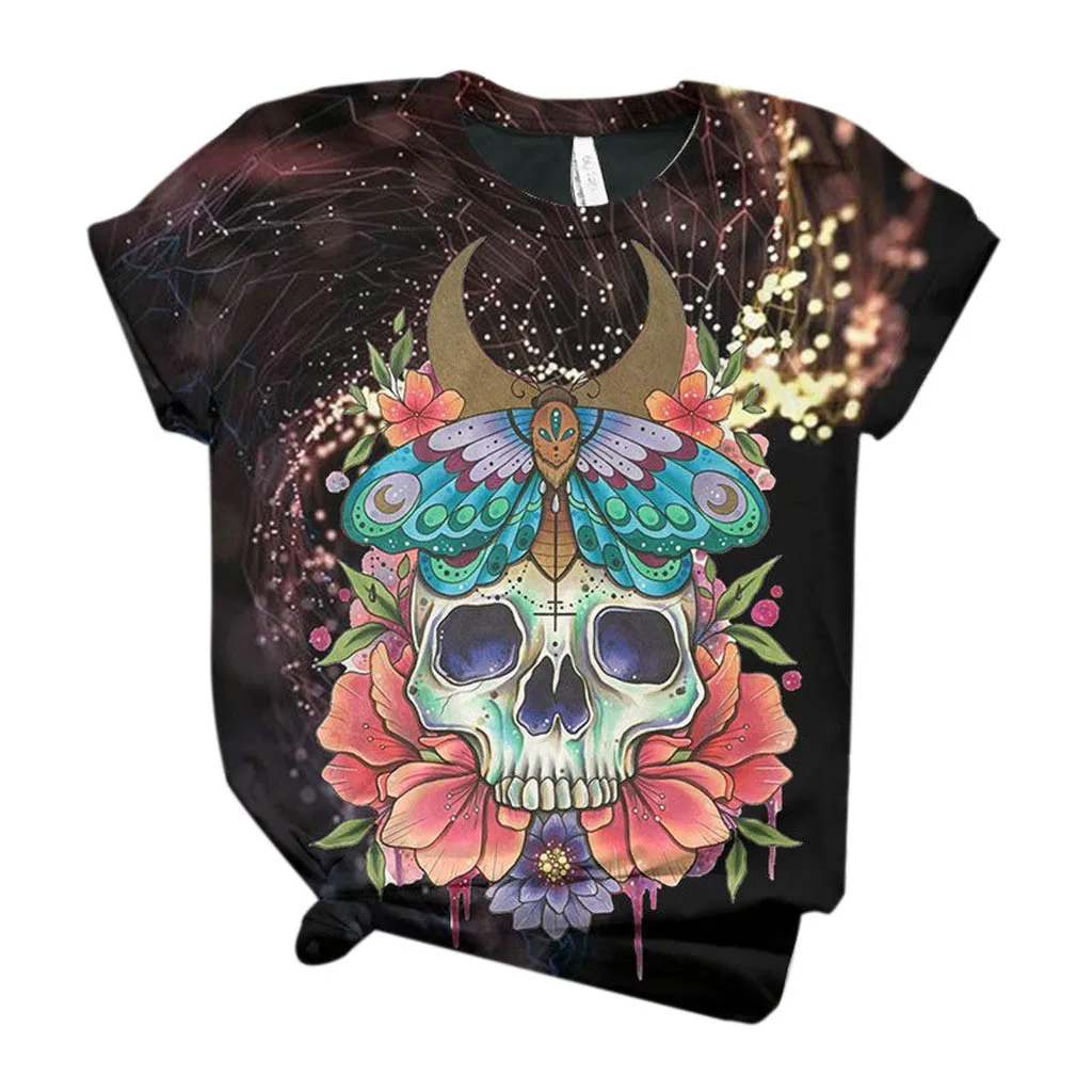 Женская футболка размера плюс с коротким рукавом с 3D принтом черепа и круглым вырезом