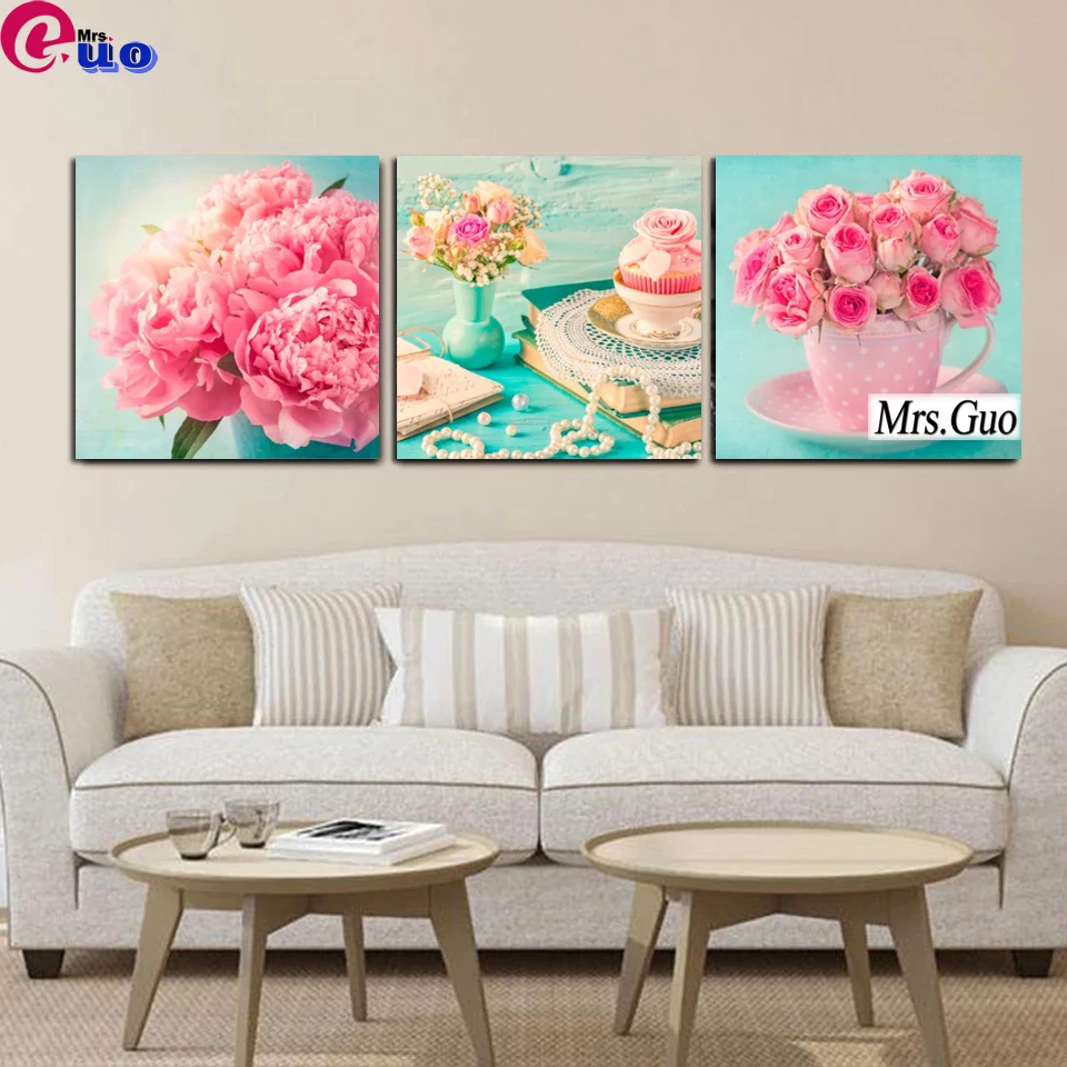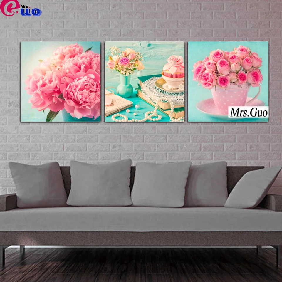 Розовые букеты Алмазная вышивка цветок Алмазная картина 5d квадратная круглая Алмазная мозаика Триптих Стразы картинки