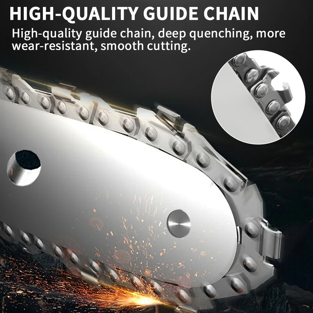 -Маленький размер, можно держать одной рукой. -Практичная, быстрая скорость, низкое энергопотребление. -Переключатель отличного качества, быстрая и медленная регулировка, плавное изменение скорости. -Щеточный двигатель из чистой меди, высокая мощность, быстрая резка, повышение эффективности. -Высококачественная направляющая цепь, глубокая закалка, более износостойкая, гладкая резка. -Перезаряжаемая Электрическая цепная пила, светильник и портативный, длительный срок службы батареи, без повреждений коры. -Светильник вес тела, светильник и удобный, светильник вес конструкции, долгое время хранения и не устают руки. -Интеллектуальная плата управления цепью, защита от перегрузки, для удовлетворения ваших различных потребностей в конструкции. -Специальная направляющая пластина, шарик из вольфрамовой стали не нужно смазывать, так что машина уменьшает сопротивление во время работы и уменьшает износ на машине.