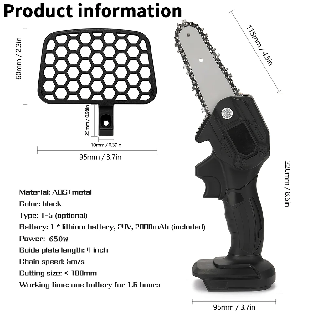 650 Вт Электрическая цепная пила, 4 дюйма, мини перезаряжаемая деревянная пила, портативная электрическая пила с 24 В, 2000 мА · ч, батарея, электроинструменты