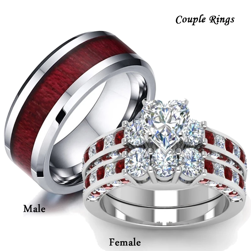 Кольца мужские и женские из нержавеющей стали, с инкрустацией из красного дерева