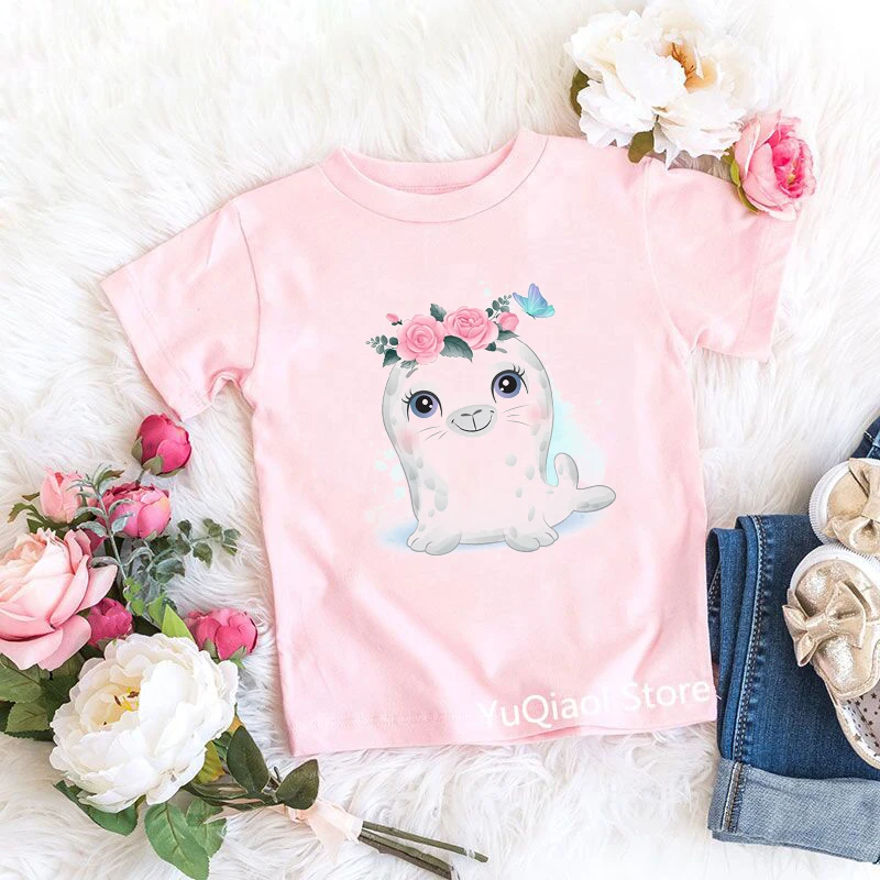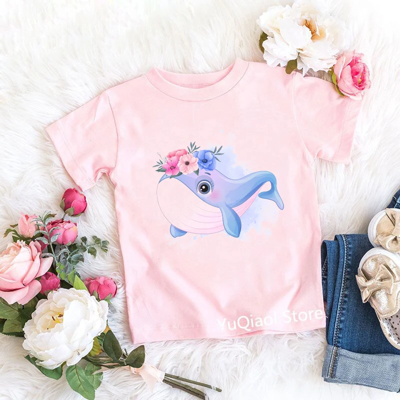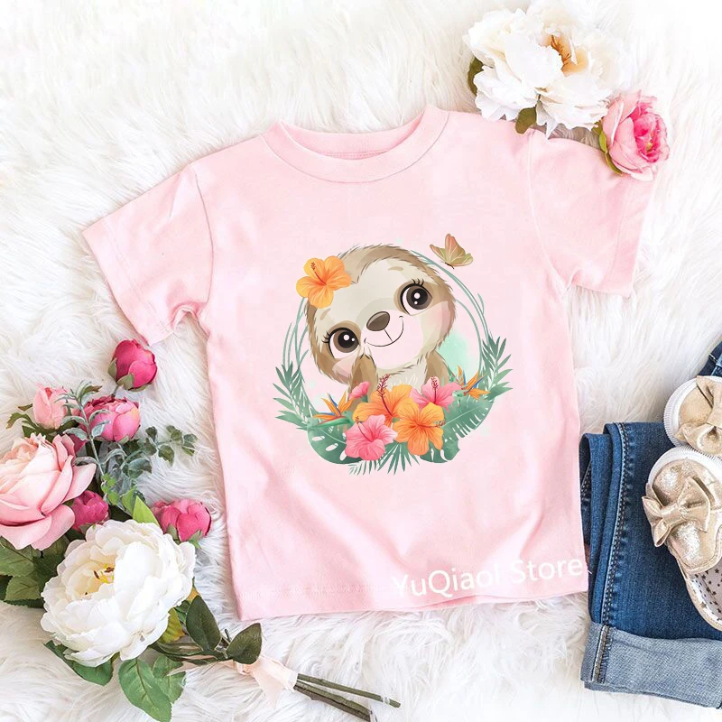 Футболка детская с принтом животных, детская одежда розового цвета, ЛенивецобезьянасвинкапандапоплавокзайчикУлиткаПтицаКИТЗебраморской левосьминог