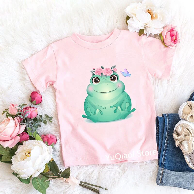 Летняя розовая футболка для девочек с мультяшным принтом лягушки, о...