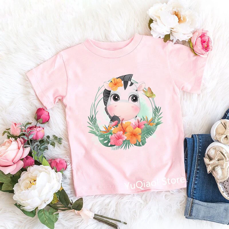 Забавная детская футболка с цветочным принтом животных, жирафкорова...