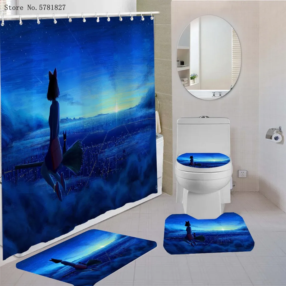 34 шт. сервис доставки Kiki набор штор для душа Miyazaki Hayao ковер коврик подставка крышка унитаза коврик для ванной набор для ванной комнаты