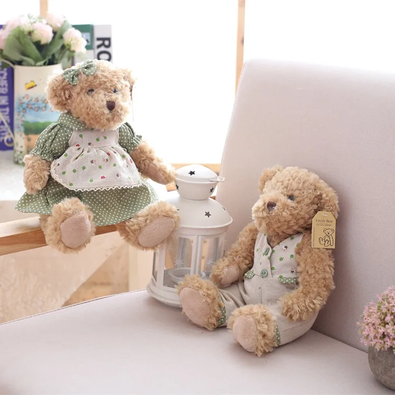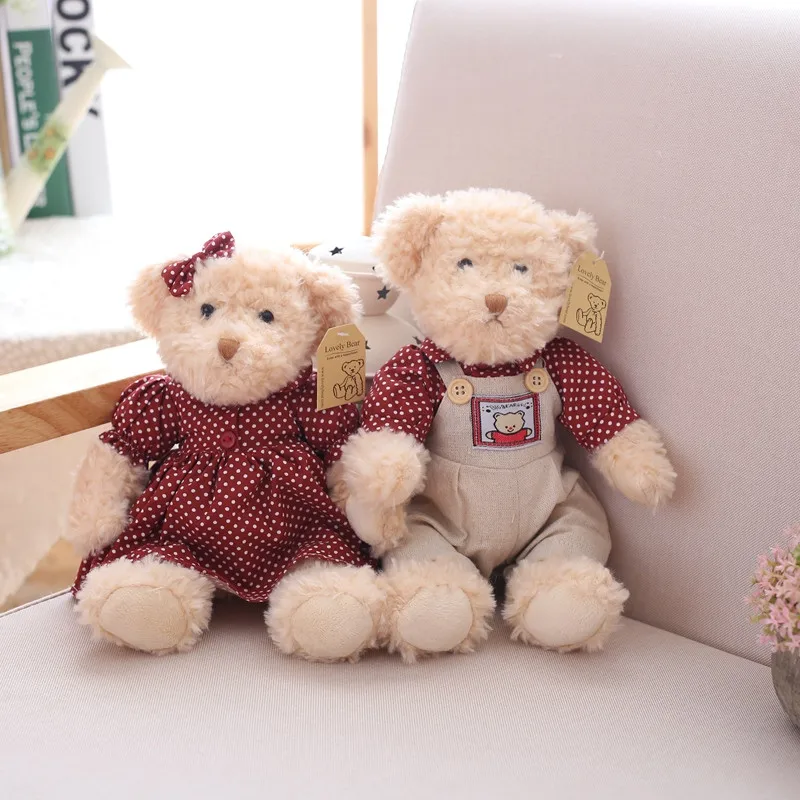 2 шт.лот 26 см милая пара плюшевый мишка с тканью плюшевые игрушки куклы мягкая игрушка для детей малышей девочек подарок на день рождения Рождество