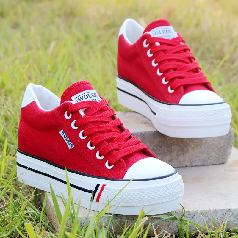 Кеды женские на платформе, холщовые кроссовки на высоком каблуке, Вулканизированная подошва, скрытая танкетка, белые, черные, красные