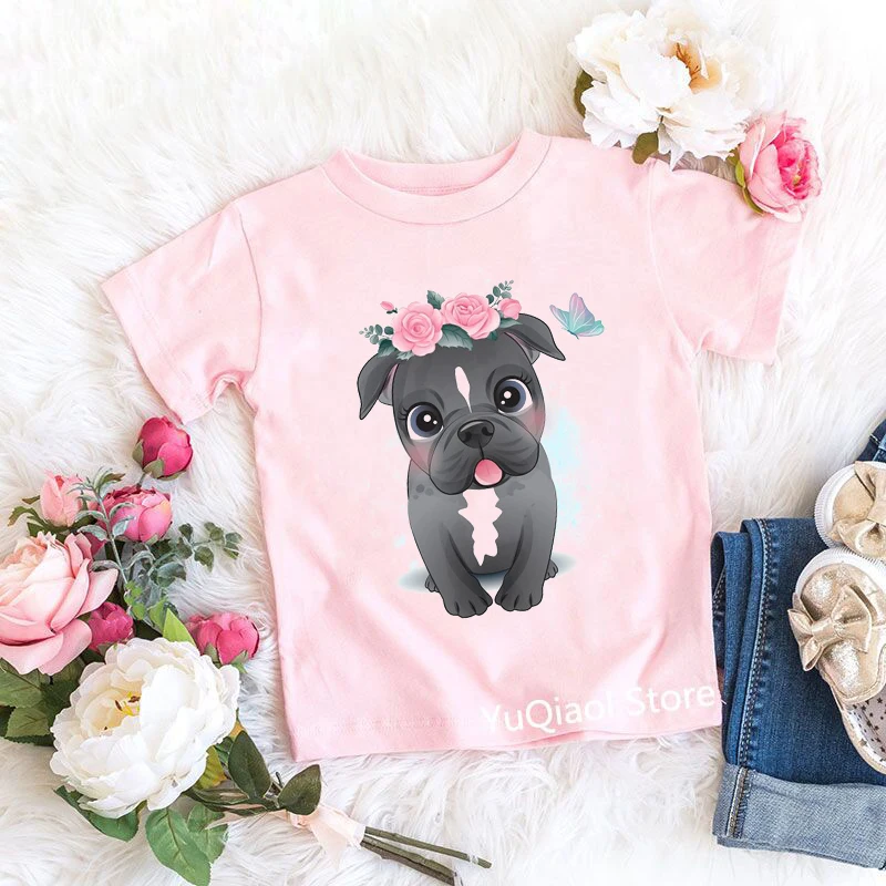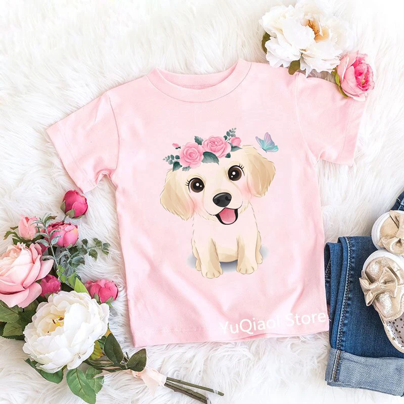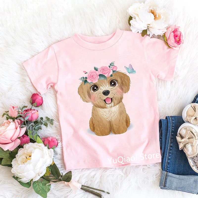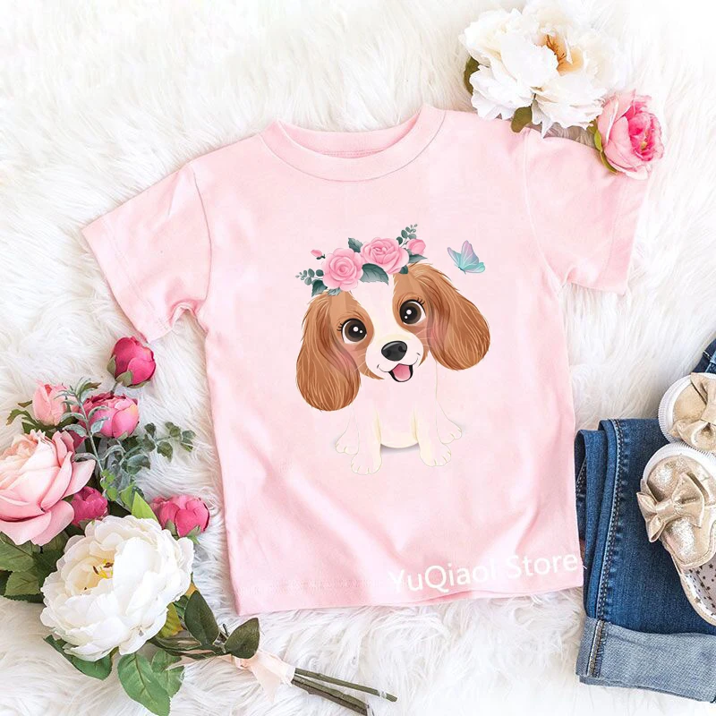 Цветочный коргиПудельШнауцершиhtzu бульдогкавалер Кинг Чарльзсибирская хаски собака любимая девочка розовая футболка детская одежда