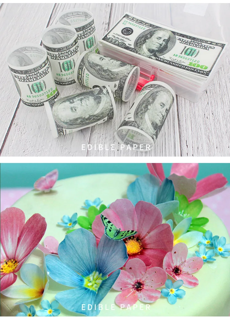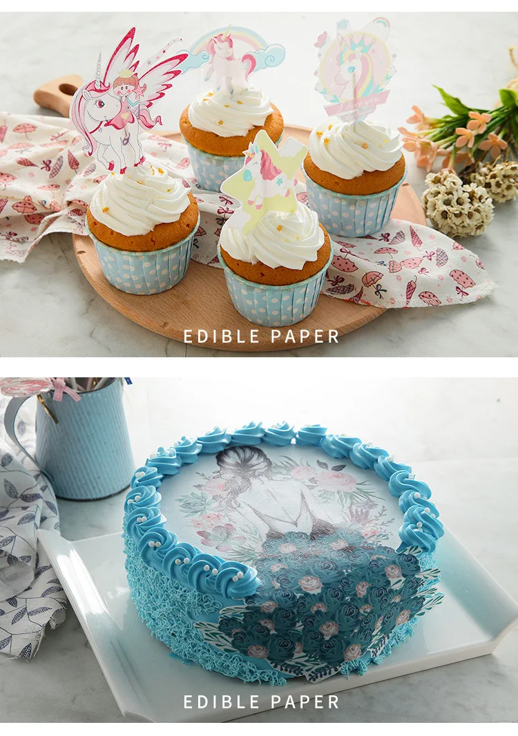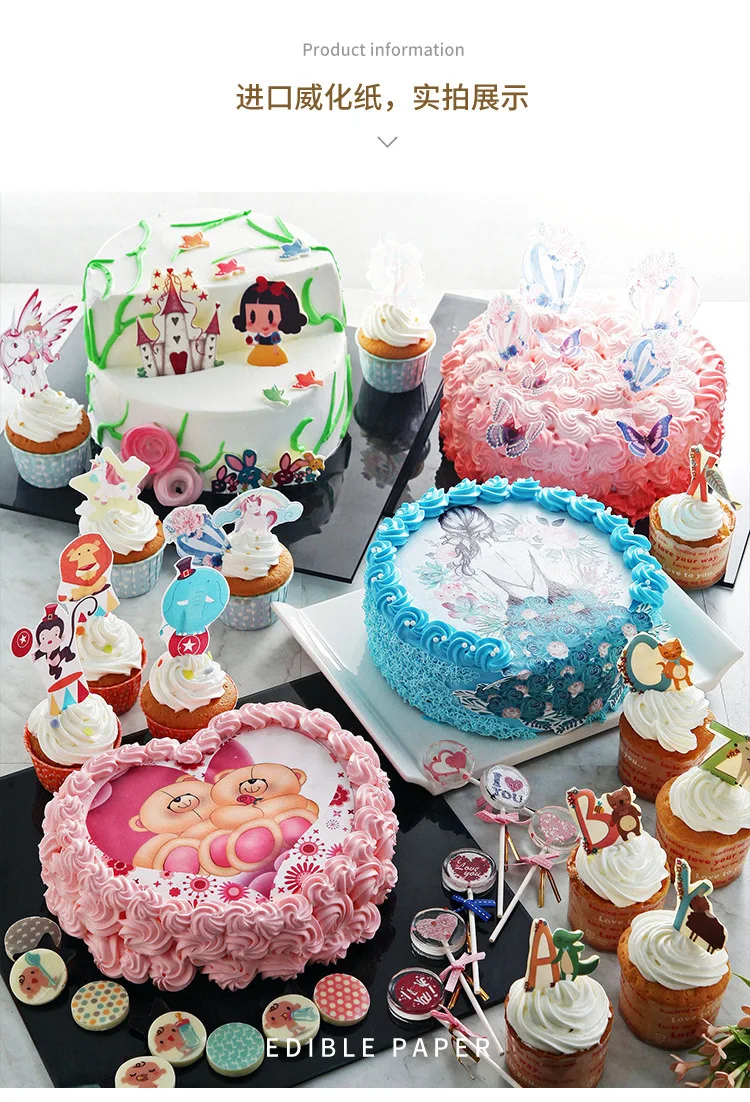 Особенности: вафельная бумага, для печати, подходит для изготовления всех видов украшения для выпечки, торта товаров, таких как: бабочки, цветы; Всевозможные Мультяшные узоры, монеты, рисунки леденцов и т. д.