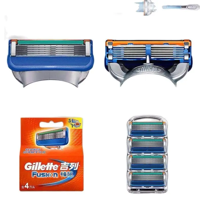 4 шт.лот лезвия для бритвы для мужчин, уход за лицом, кассета для бритья с 5 слоями, Безопасные лезвия из нержавеющей стали, подходит для Gillette Fusion