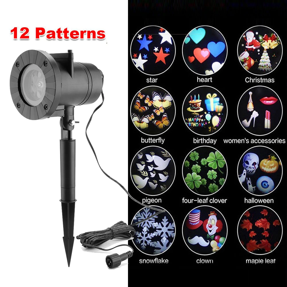 Светодиодная проекционная лампа в виде снежинок, сердец и звезд, 12 узоров