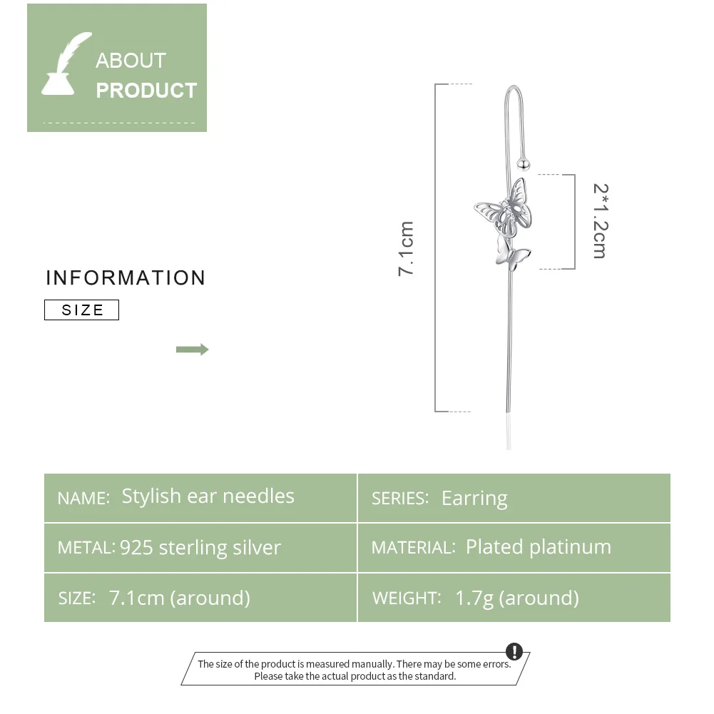 ❤【Примечание 】 1 шт./серьги❤【Description】Double длинные ушные иглы в форме бабочки, один из которых использует полый дизайн, украшенный блестящим цирконием, его кросс-ношение креативный стиль, полный индивидуальности веселья.❤【Характеристики 】высота: 7,1 см, размер бабочки: 2*1,2 см, вес: 1,7 г❤【Материал: 】 серебро 925 пробы и паве с фианитом и платиной, эти серьги не имеют никеля, не содержит свинца, не содержит кадмия, гипоаллергенны. Гарантия качества, приятный для кожи, удобный и удобный в носке, не вредный для вашего здоровья.❤【На подарок 】 1 пара сережек и 1 шт. Изысканная Подарочная коробка, которая является идеальным подарком для мамы, дочки, правки, тети, сестер, друзей.❤【BAMOER YOU】 чтобы обеспечить ваше полное удовлетворение, любые вопросы о продукции BAMOER, просто не стесняйтесь обращаться к нам, мы постараемся сделать все возможное, чтобы помочь вам.