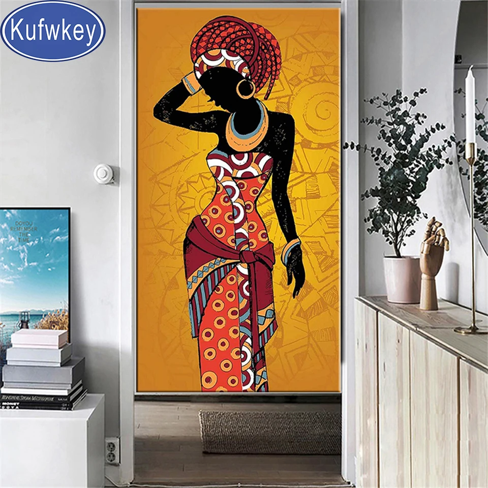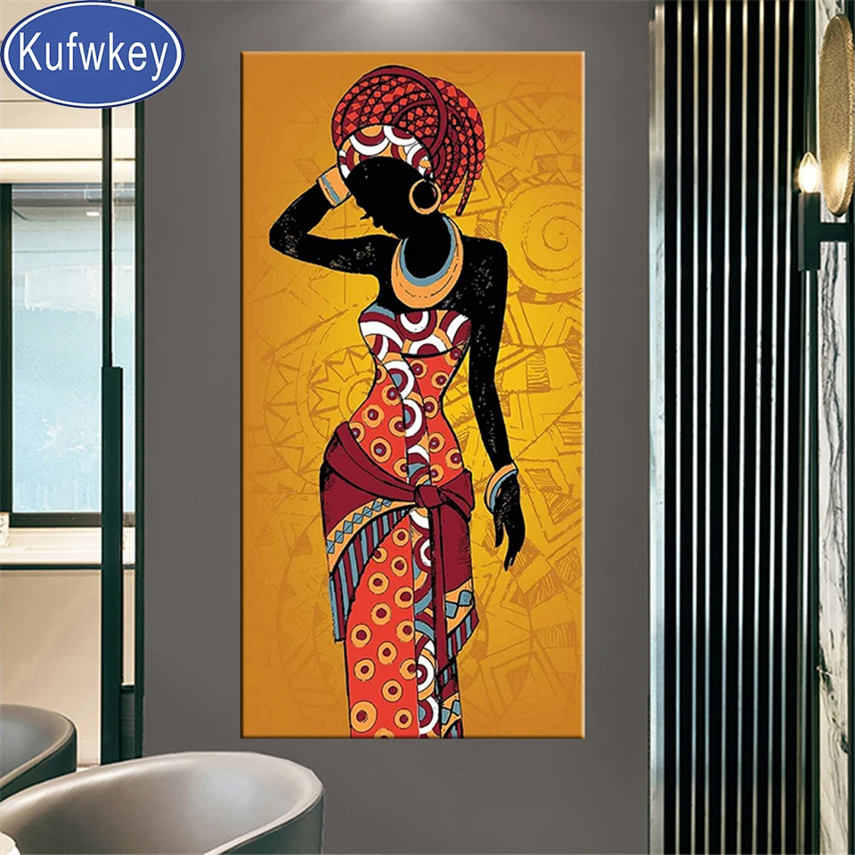 Новинка, алмазная вышивка в африканском стиле, черная и Золотая Женская Алмазная картина, полностью квадратная круглая Алмазная мозаика,