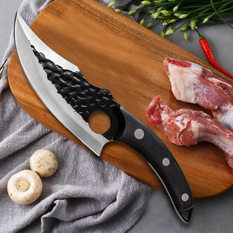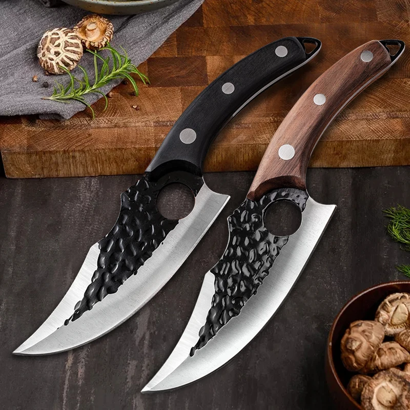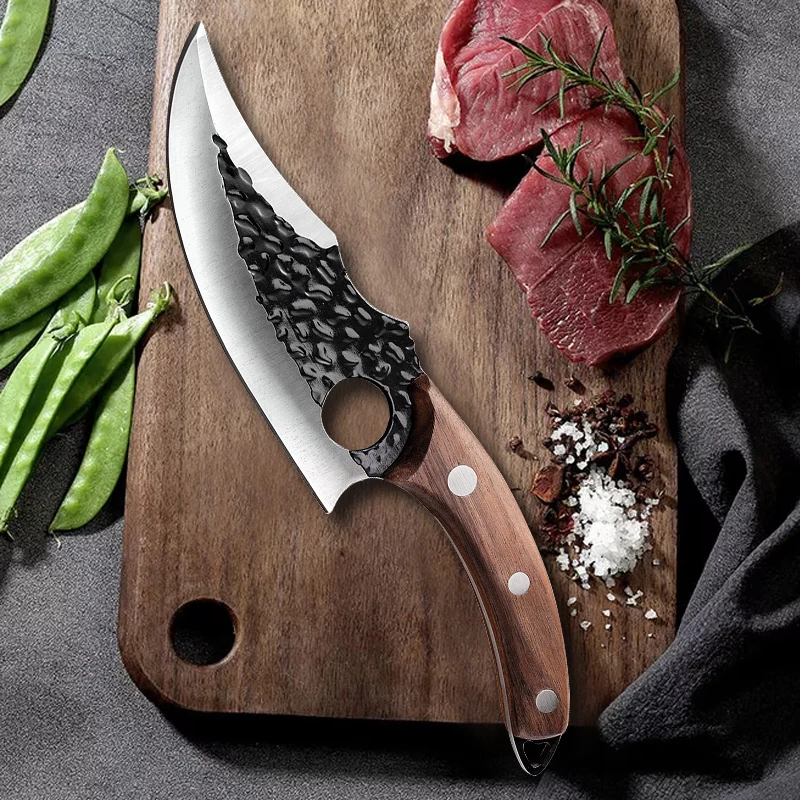 Кухонный нож, кованый нож шеф-повара, охотничий нож на открытом воз...