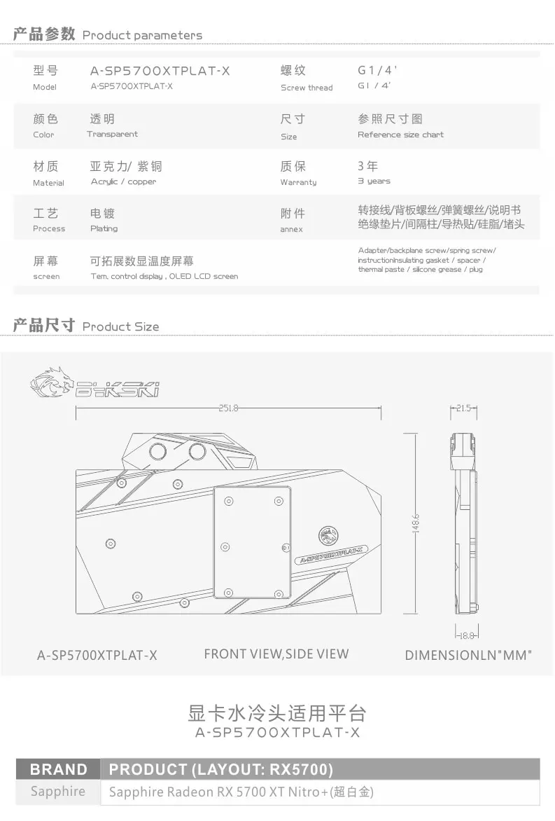 Bykski A-SP5700XTPLAT-X подходит для охлаждающего водяного блока видеокарты sapphire RX5700XT ultra-platinum