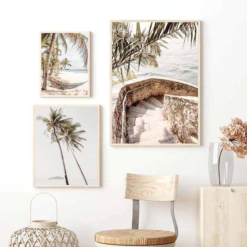 Плакат на холсте в стиле бохо, с изображением Морского Пейзажа, пальмы