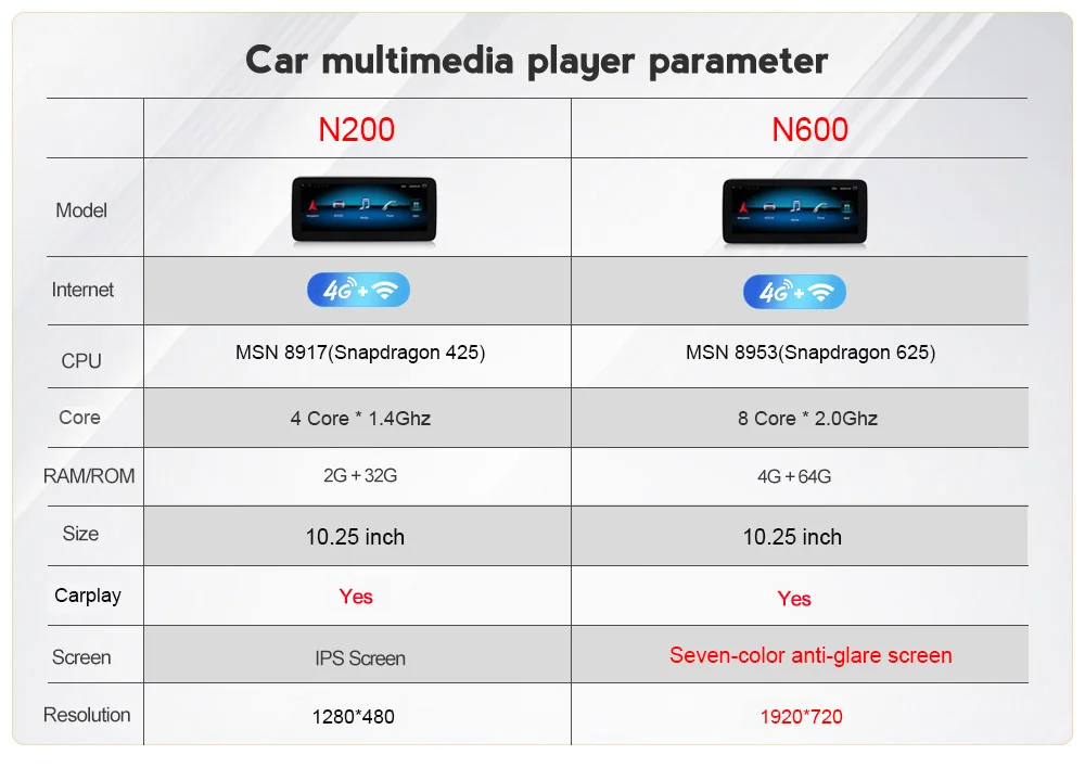 > 10,25 дюймовый IPS емкостный экран + четырехъядерный/Восьмиядерный + DDR3 2 Гб (4 Гб на выбор) флэш-память + 32 Гб (64 Гб на выбор) + Встроенный carplay + встроенный Wifi + 4G LTE + gps-навигация (бесплатное обновление карты) + Управление рулевым колесом + Зеркальное соединение + BT + Встроенный микрофон + Поддержка функции USB ADAS DVR + Функция Europe DAB + 1080P Vedio Play + HD 1280*480(1920*720 опционально)