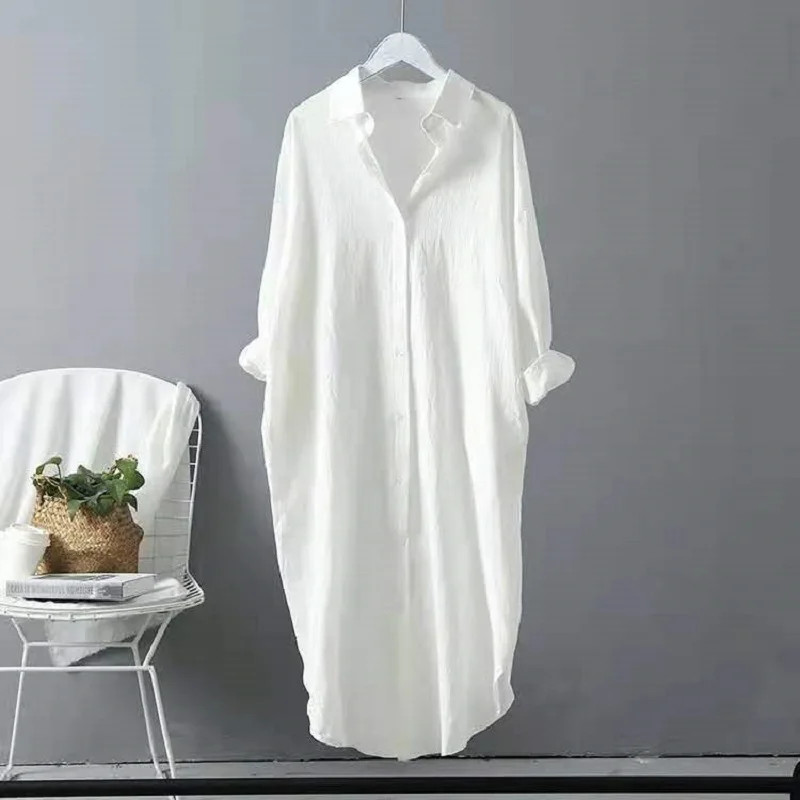 Платье-рубашка женское длинное из хлопка и льна, винтажная блузка-р...