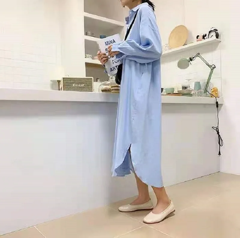 Рубашки платья для женщин 2021 хлопок корейская мода свободные с длинным рукавом Весна Лето размера плюс Traf