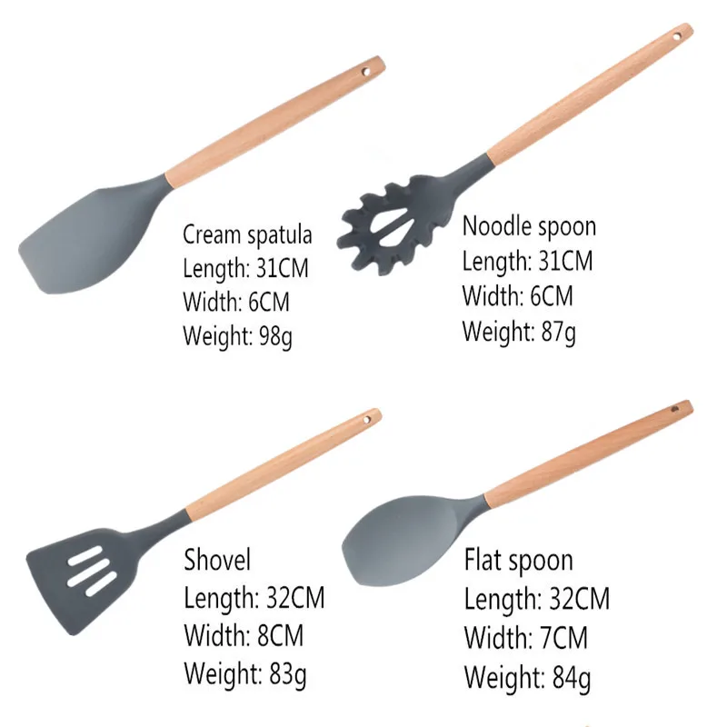 Набор кухонных принадлежностей из силикона с деревянной ручкой, 1-11 предметов