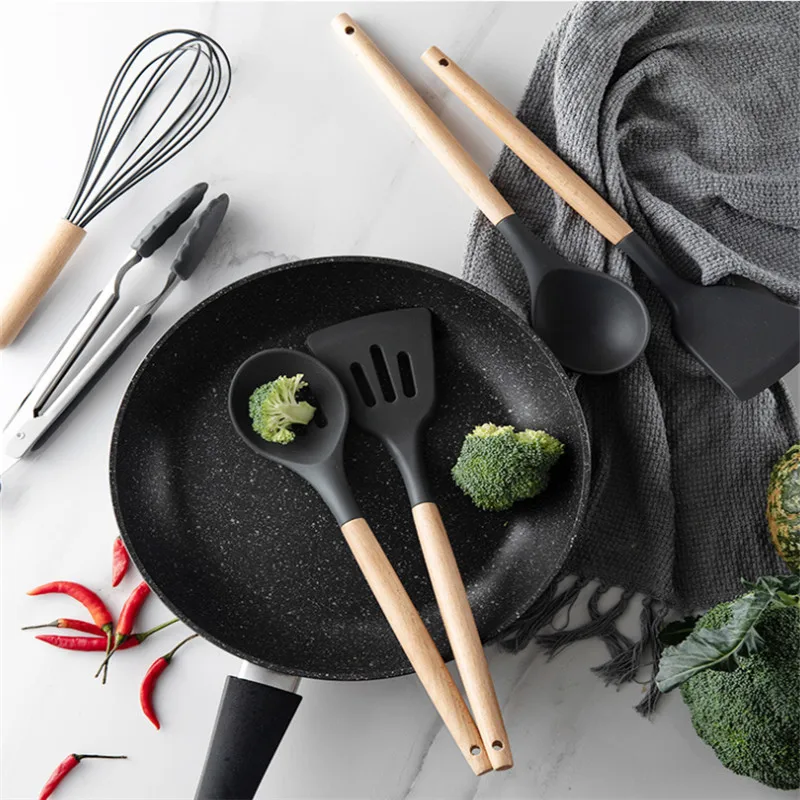 Деревянная силиконовая кухонная утварь, антипригарная кухонная утва...