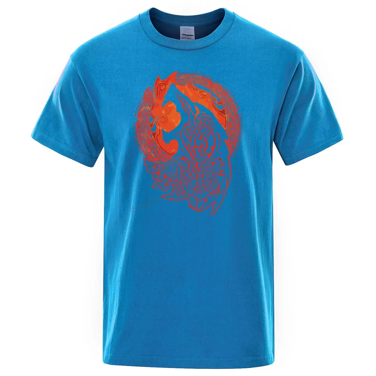 Футболка мужская хлопковая для отдыха, топ с изображением скандинавской мифологии викинга Фенрир волка, хипстерский Топ Премиум-качества из хлопка с принтом викингов