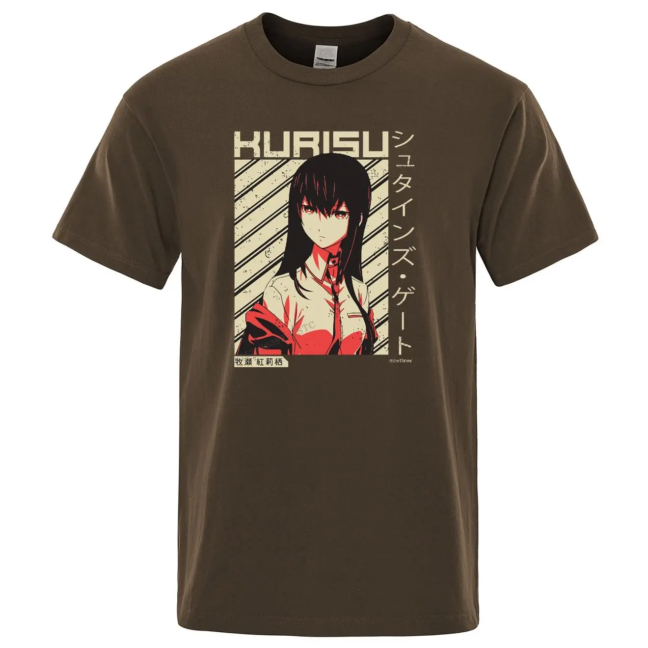 Makise Kurisu Новое поступление Camisas Hombre Мужская футболка мужская повседневная одежда из хлопка, футболки с аппликацией в виде Steins Gate Топы уличная одежда с японскими аниме-принтами