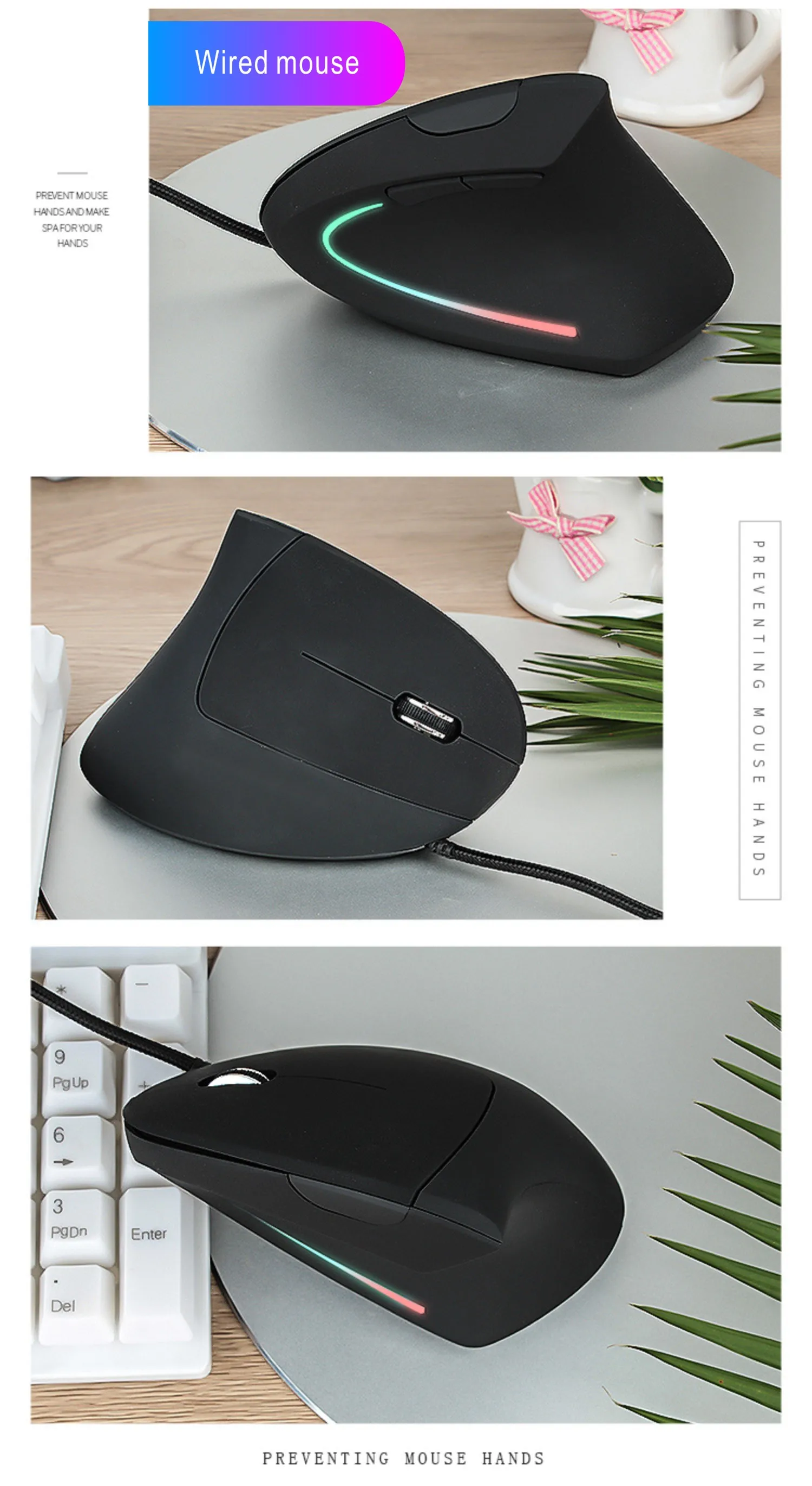 Проводная вертикальная мышь с правой рукой, эргономичная игровая мы...