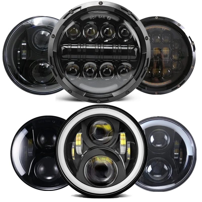 Посылка: 2 круглых светодиодных фары 7 дюймов (свяжитесь с нами, если вам нужен хром)