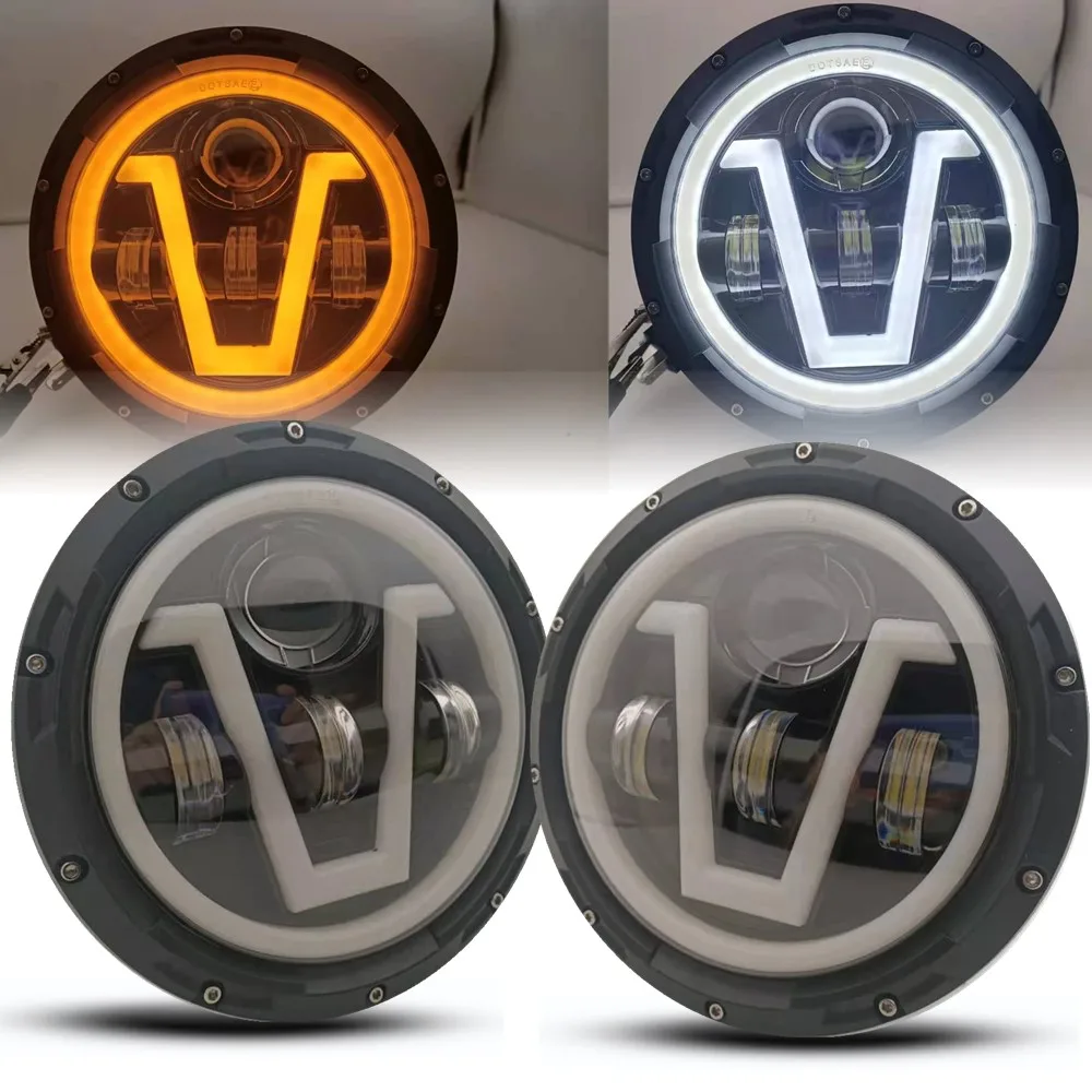 Светодиодные фары для Jeep Wrangler TJ JK LJ CJ Land Rover Defender 4x4, 2 шт., кольцевая фара