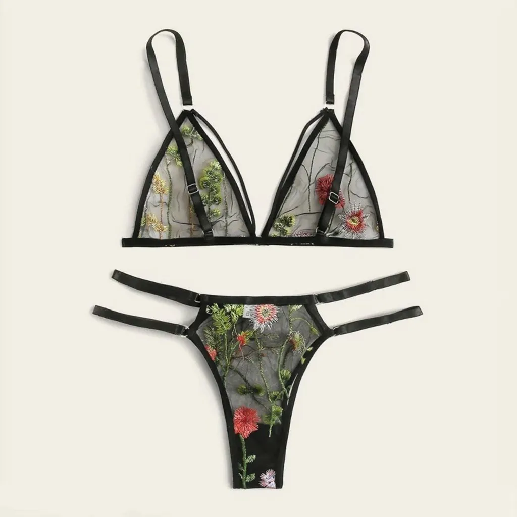 Экзотическое женское нижнее белье, кружевной сетчатый прозрачный бюстгальтер с вышивкой и цветами, Прозрачное нижнее белье, нижнее белье, трусики танга, порно для женщин 3XL