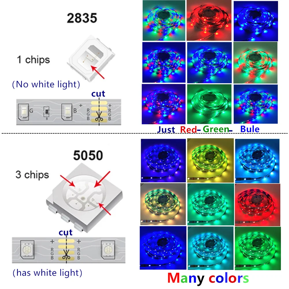 Примечание: Светодиодный индикатор 2835SMD RGB не имеет белого цвета. При нажатии кнопки «W» одновременно появляются три цвета: красный, зеленый и синий. Светодиодный прожектор 5050SMD RGB белого цвета. При нажатии кнопки «W» Белый Цвет отображается одновременно. Посылка: Вариант: 1 светодиодный светильник с RGB + 24KEY контроллером (без батареи CR2025) Вариант: 2 светодиодный светильник с контроллером RGB + 3 ключа Вариант: 3 светодиодный светильник с контроллером RGB + Bluetooth. Спецификация: [Светодиодный светильник s для полосы 1 м]: 2835 60 светодиодный/M 5050 30 светодиодный/M [Размер]: 1 м/2 м/3 М/4 м/5 м Водонепроницаемость: IP20 (не водонепроницаемый) Характеристика: Резиновая подложка проста в установке 1 Угол обзора: 120 ° 2 светодиодный срок службы: 50000 часов 3 Применение: телевизор, компьютер, караван, украшение автомобиля, украшение праздника (Рождество) 4 Архитектурное декоративное освещение Освещение 5 проходов в аудитории