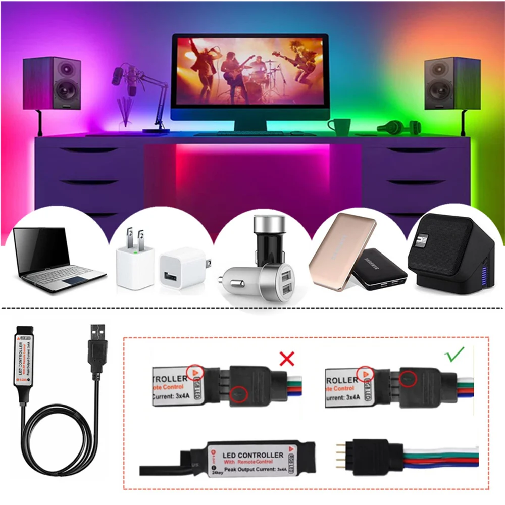 Светодиодная лента Bluetooth USB RGB 5V 2835SMD Гибкая ленточная ТВ настольная ПК украшение экрана освещение для спальни 1M 2M 3M 4M 5M