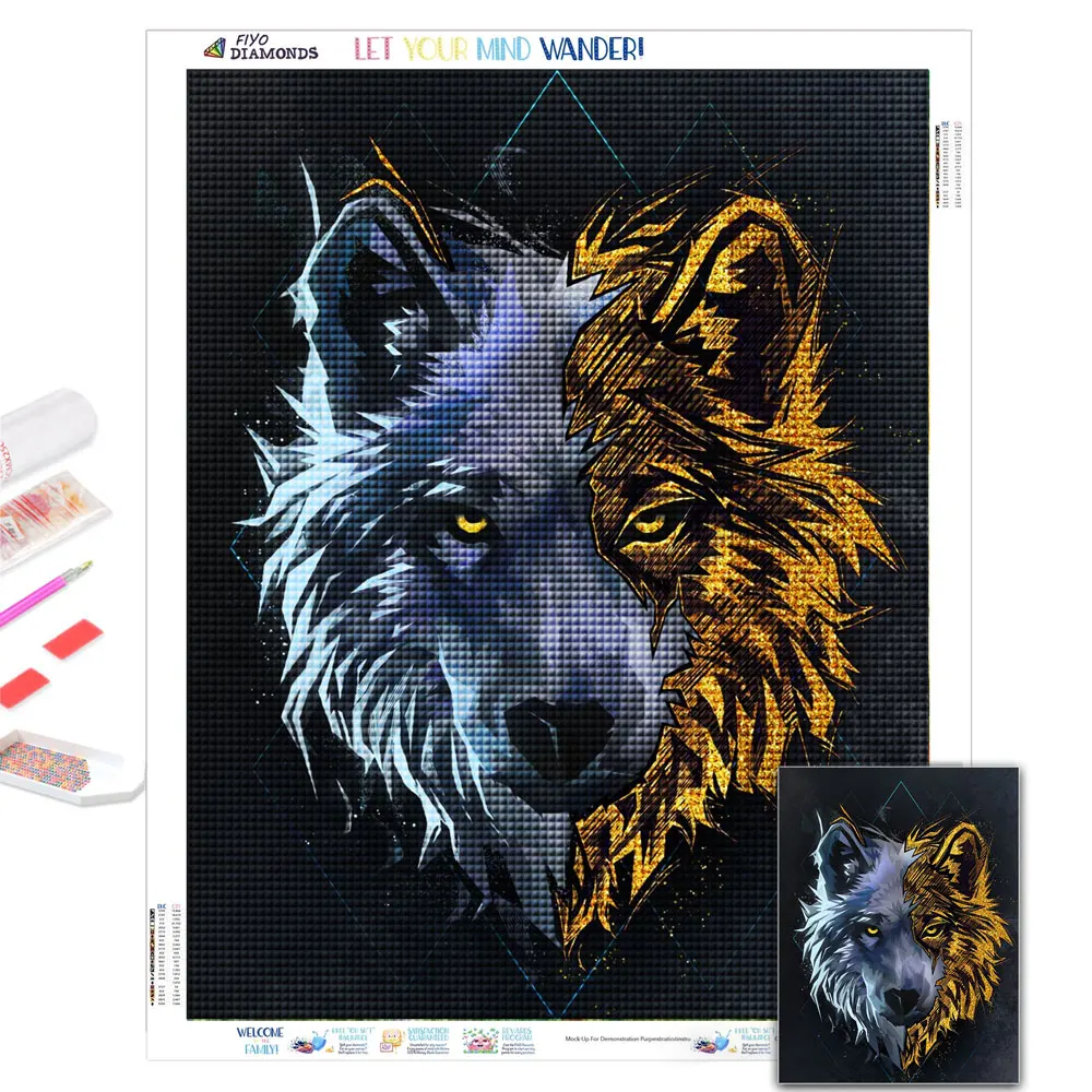 【Площадь сверла】:Полностью квадратная/круглая бриллиантовая мозаичная фигурка животного волка