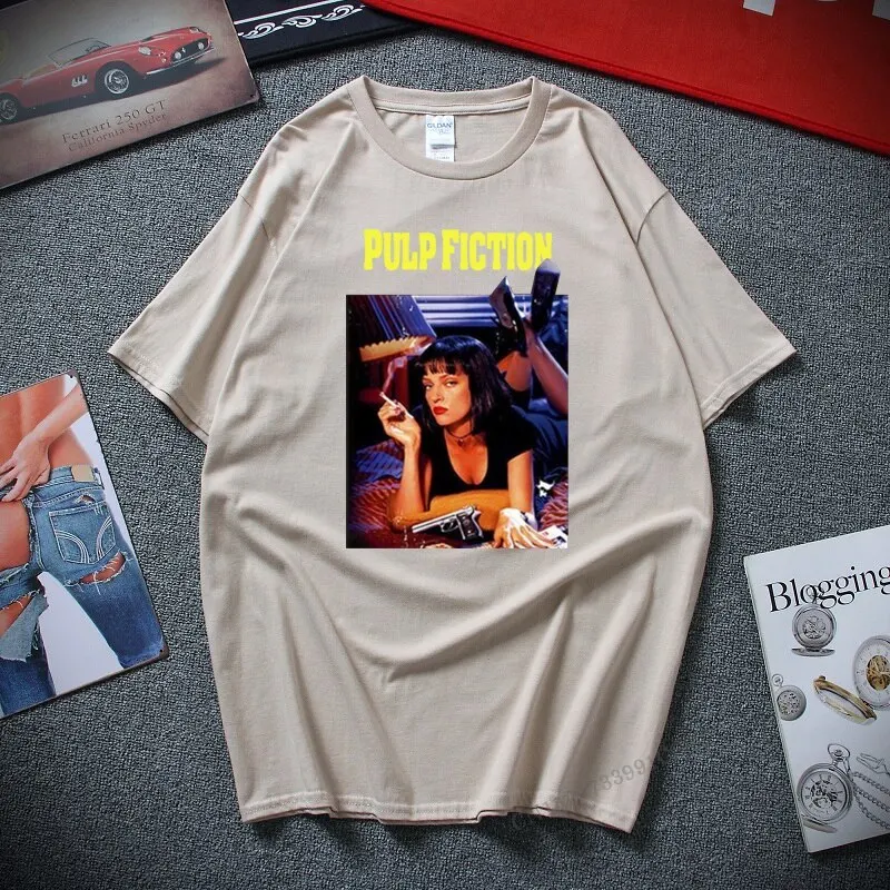 Новинка, летняя мода, Постер криминальной фантастики, футболка Квентина Тарантино, Мужская футболка с круглым вырезом и рукавом