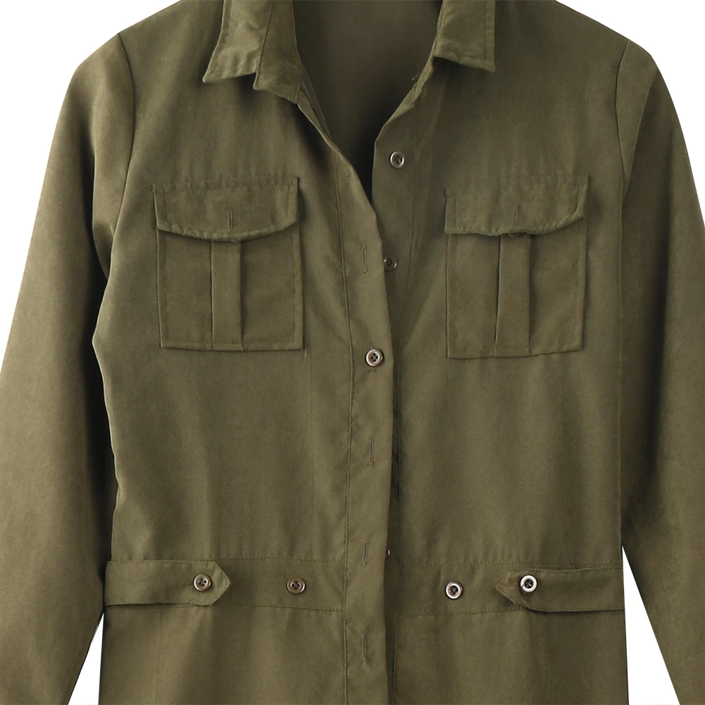 Женский комбинезон с длинными рукавами, отложным воротником и двумя...