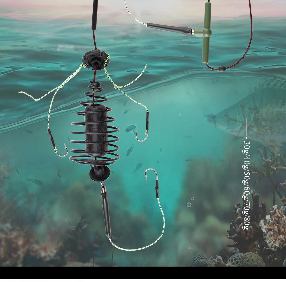 FTK новая улучшенная версия, металлическая клетка для рыболовной приманки, 30-80 г, кормушка для карпа с основным ПЭ леской, крючки из высокоуглеродистой стали 8 #